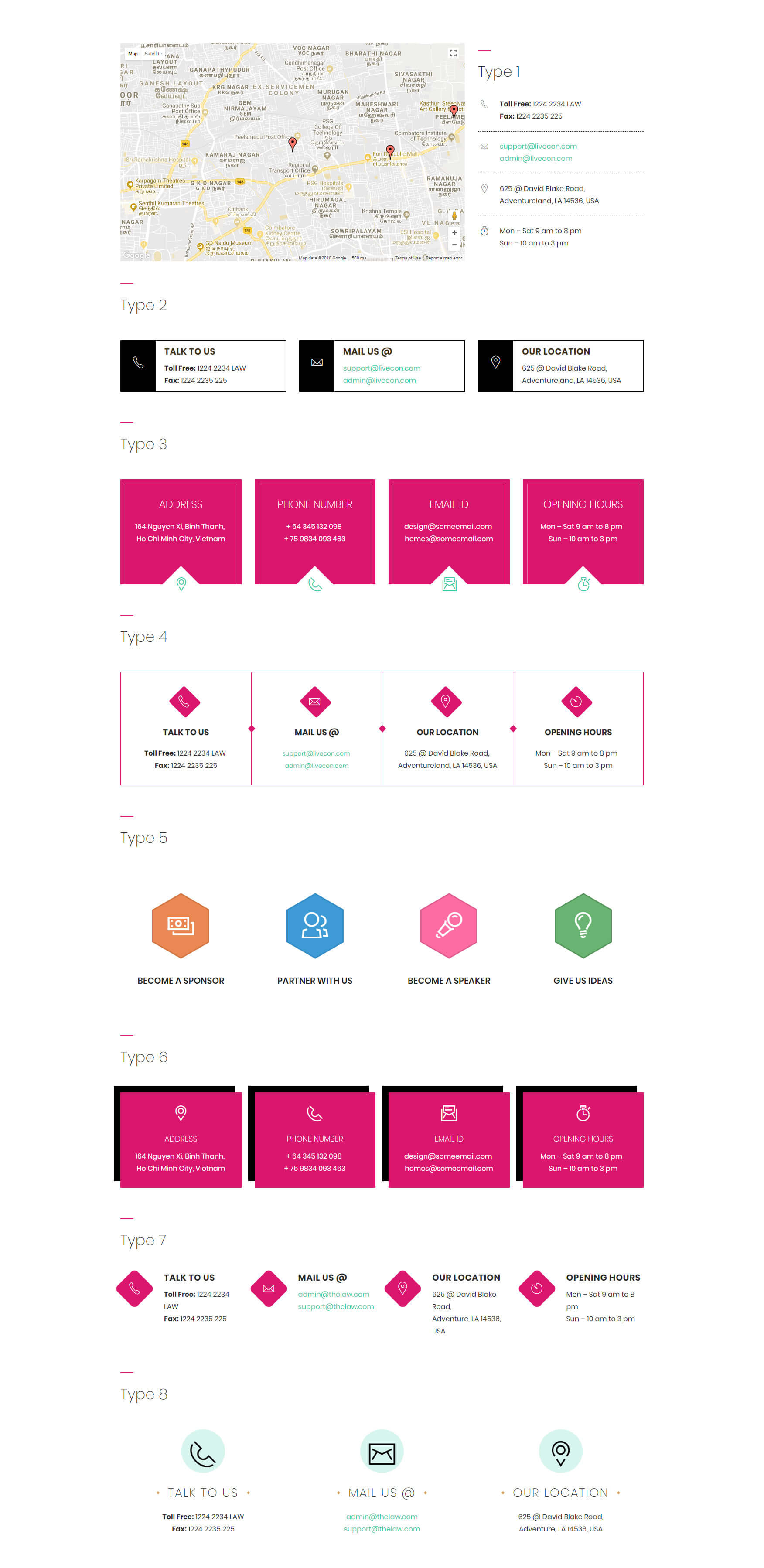 This plugin will allow you to add contact information from admin panel and show them in frontend. Using shortcodes and functions.